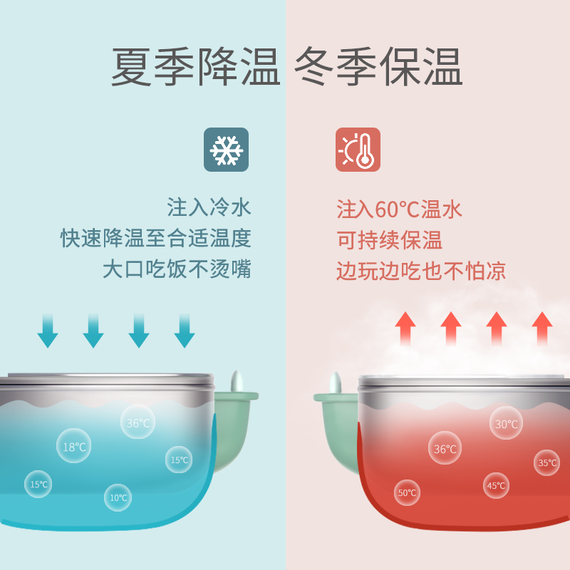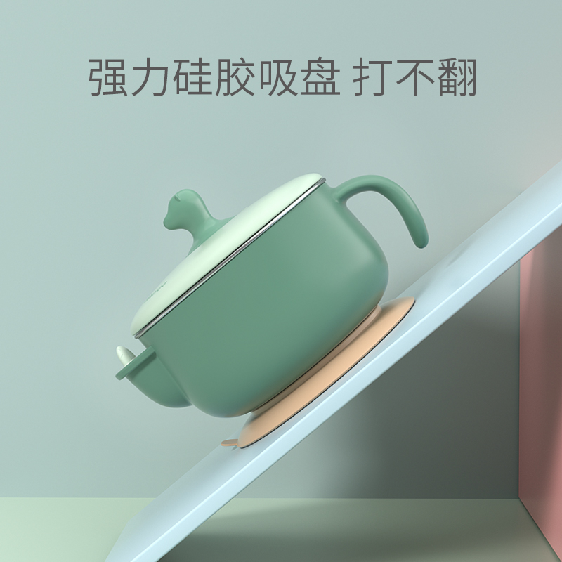 minitree baby water injection thermos bowl Children's tableware set Eating food bowl Baby stainless steel suction cup bowl