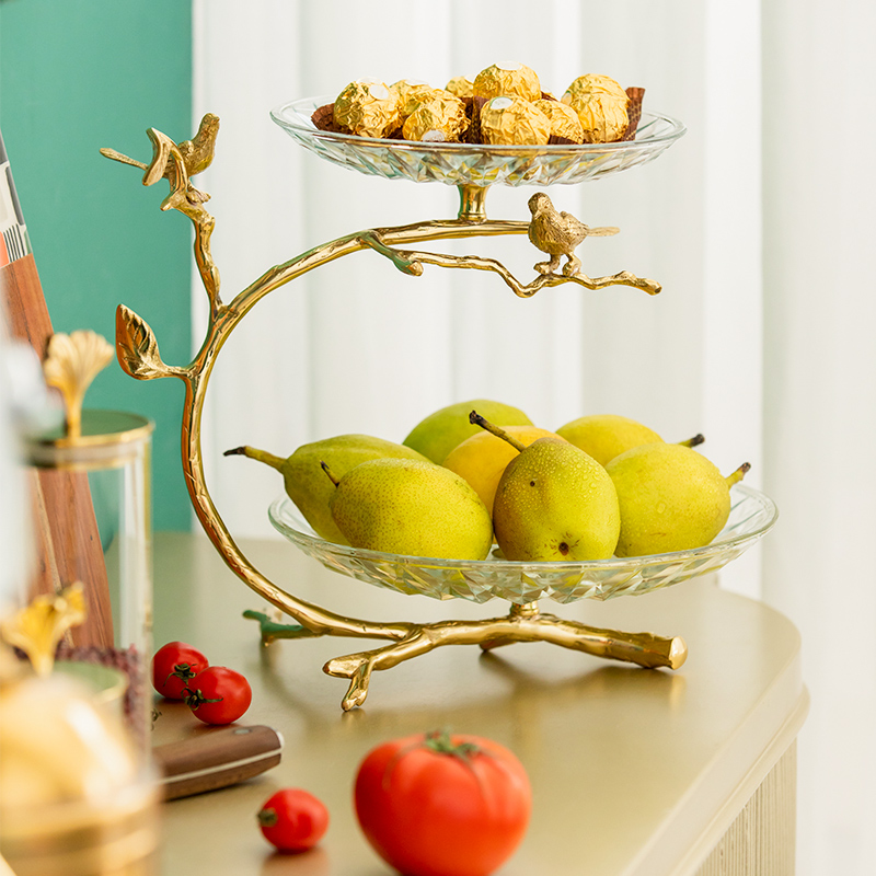 Harvest cottage European style light luxury home fruit plate decorative ornament brass high-end tea snack candy plate storage