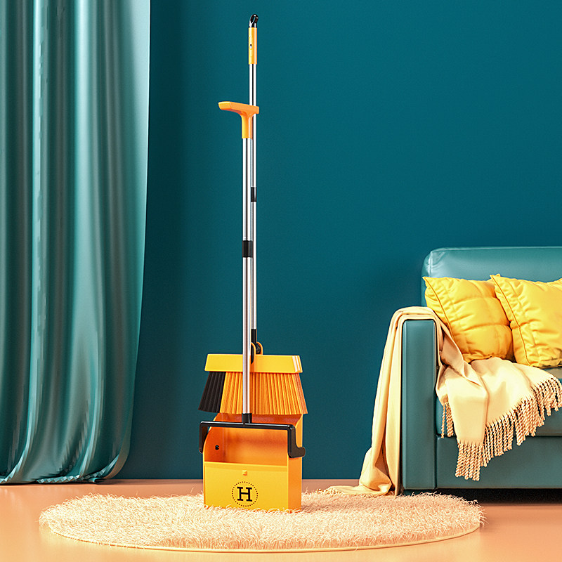 Emma Orange Light Luxury Package A (Broom Set + Double Decker Trash Can)