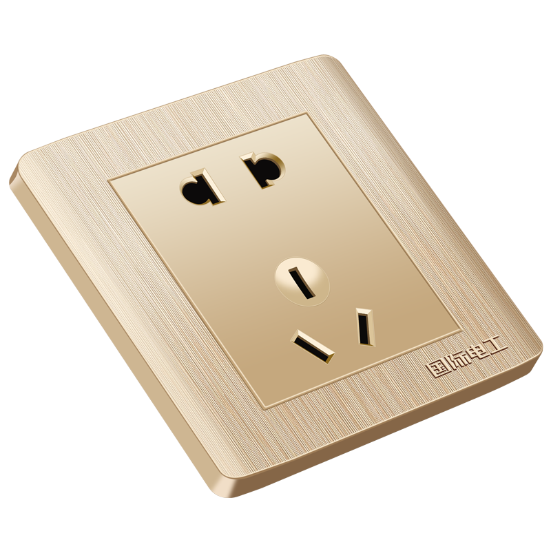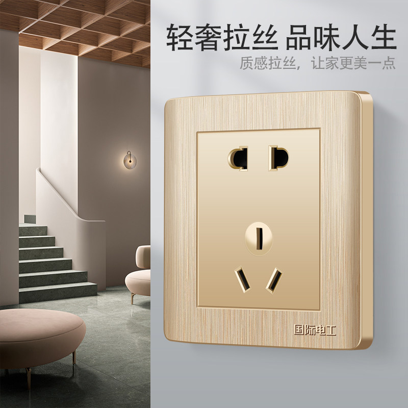 The International Electrotechnical 86 concealed domestic five-hole 5 holes five eyes two three-prong wall power outlet panel champagne gold