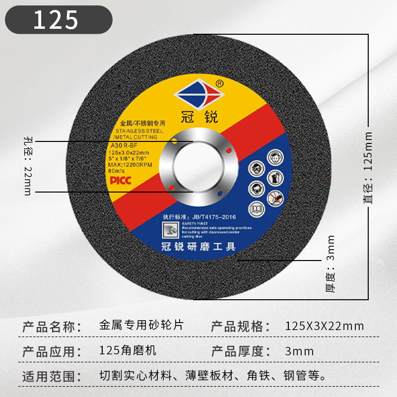 Thickened angle mill cutting sheet 125150180 * 3mm angle mill grinding wheel sheet metal stainless steel sand wheel sheet
