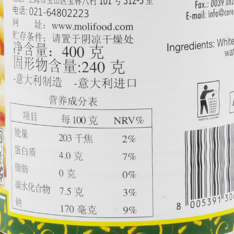Imported Molly white beans canned 400g household breakfast ready-to-eat white beans cooked kidney bean salad western food ingredients