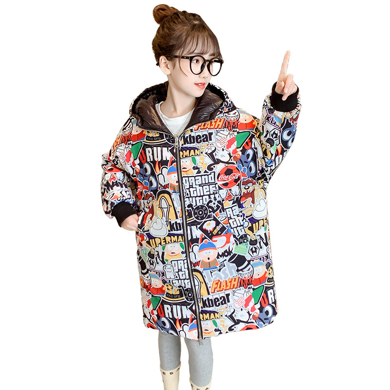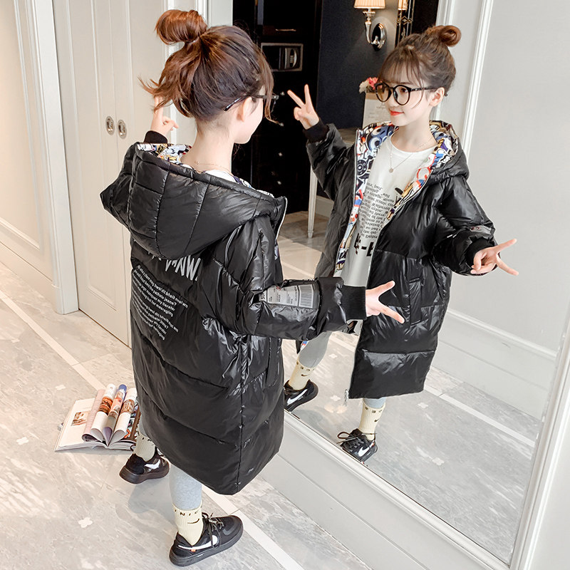 Girls' cotton clothes 2021 new winter clothing down cotton clothes Grand Scouts Two sides wearing children's medium long version thickened jacket