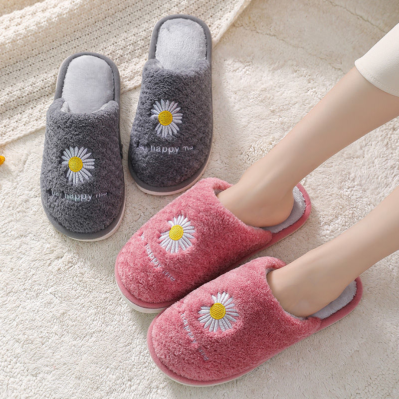 Cotton slippers female winter indoor thick bottom non-slip home lovers' PU noodles waterproof and warm and velvety slippers male slippers