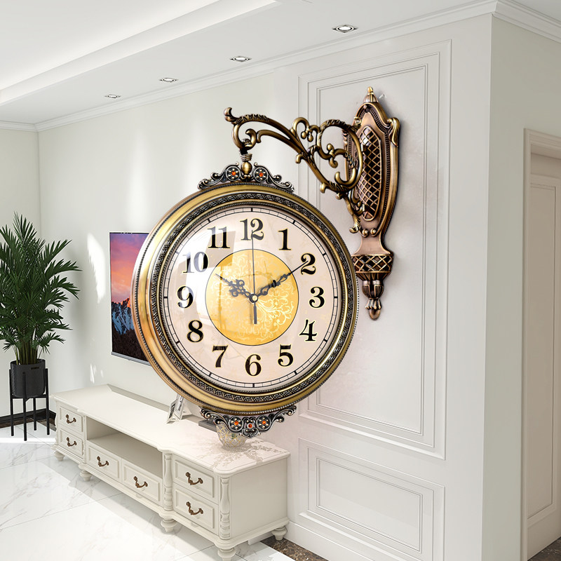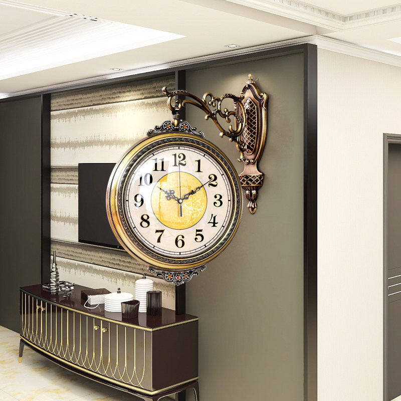 American bifacial watches light and luxurious atmosphere hanging bell high-end living room hanging table Two sides Home mute Euro style hanging watch decoration