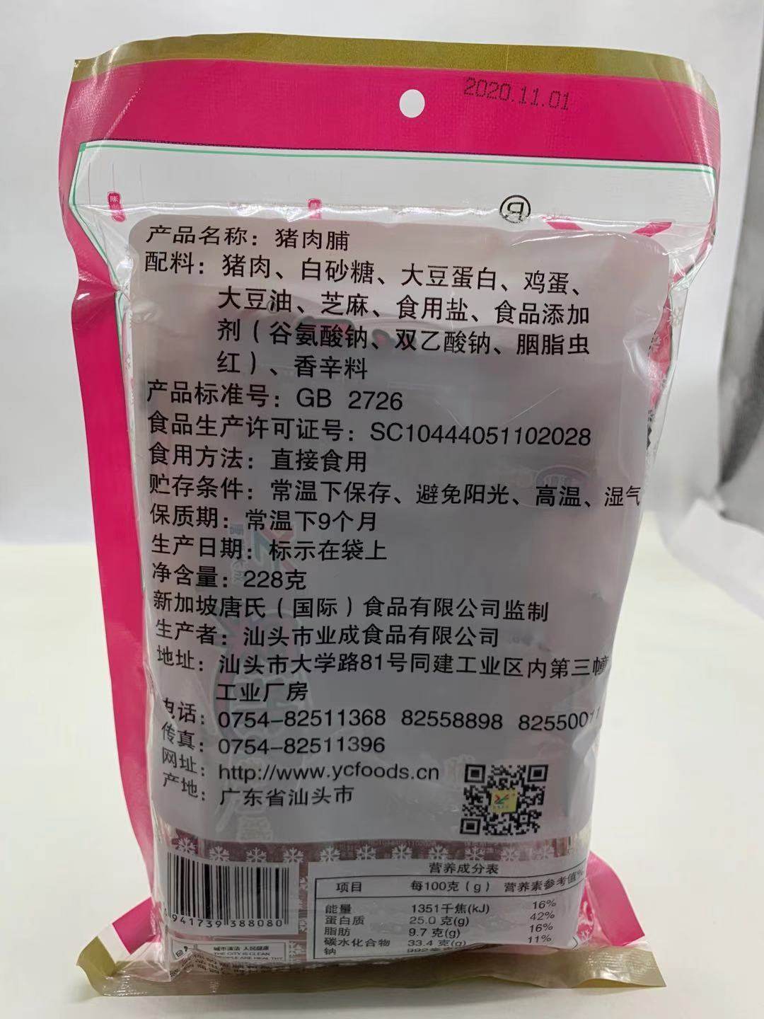 Pork White Sugar Soy Protein Egg Soybean Oil Sesame Salt Food Additives (Sodium Glutamate Sodium Diacetate Cochineal) Spices