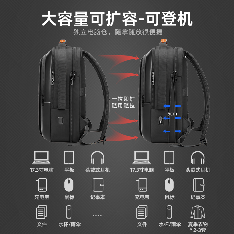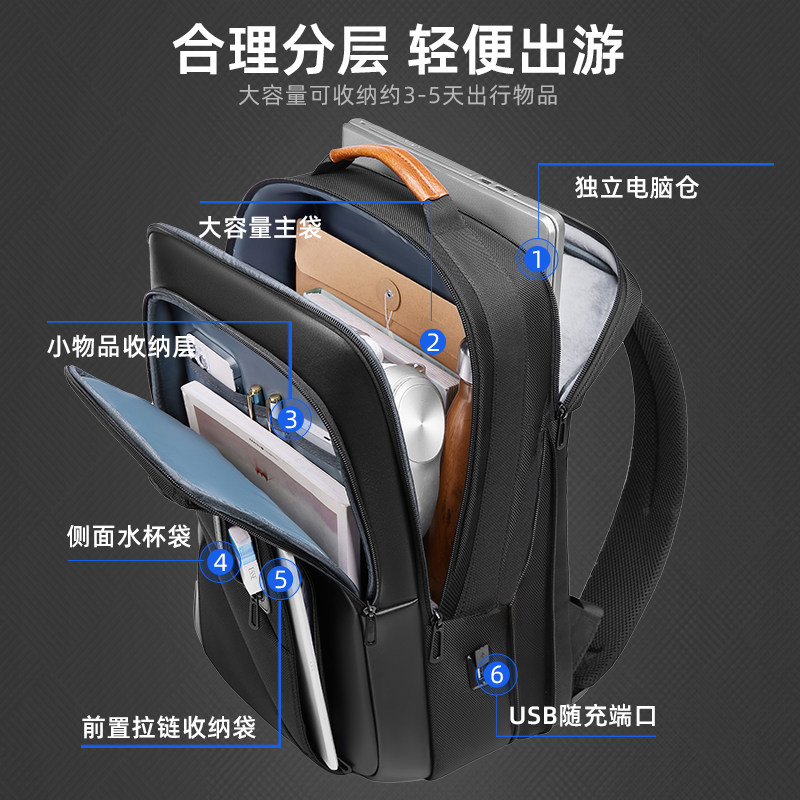Zipper pockets Mobile phone pockets Interlayer zipper pockets ID slots Mesh pockets Computer pockets