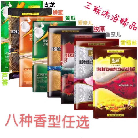Eight kinds of 2 bags of 3-in -1 with 16 bags of cologne bath oil 3-in -1 16 bags of cucumber bath oil 3-in -1 16 bags of honey bath oil 3-in -1 16 bags of aloe bath oil 3-in -1 16 bags of Guerlain fragrance