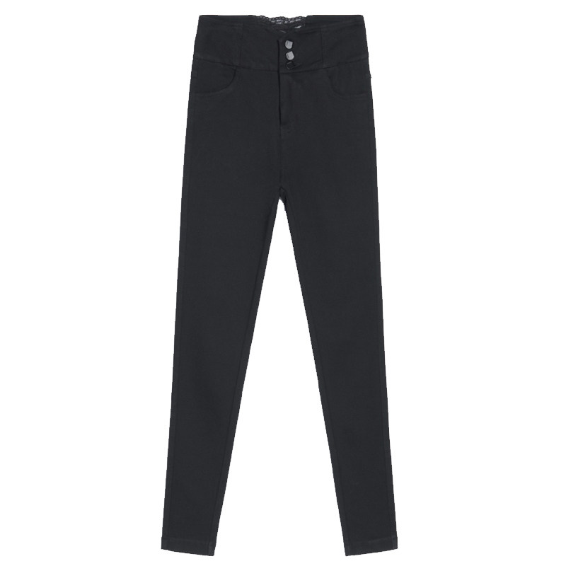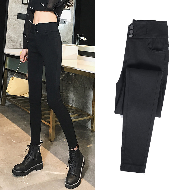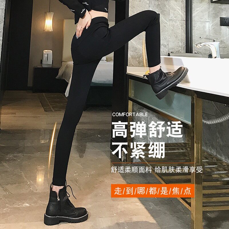 Hong Kong high-waist high elasticity tight thin feet thin piece of small black pants wearing plug-length soft pants