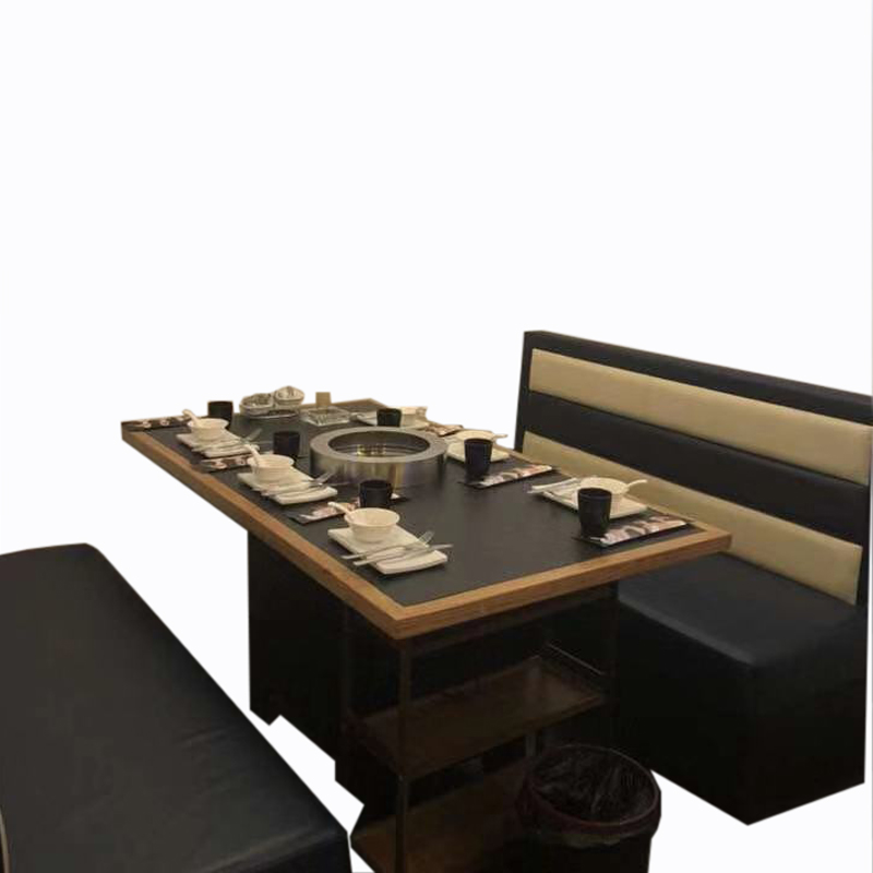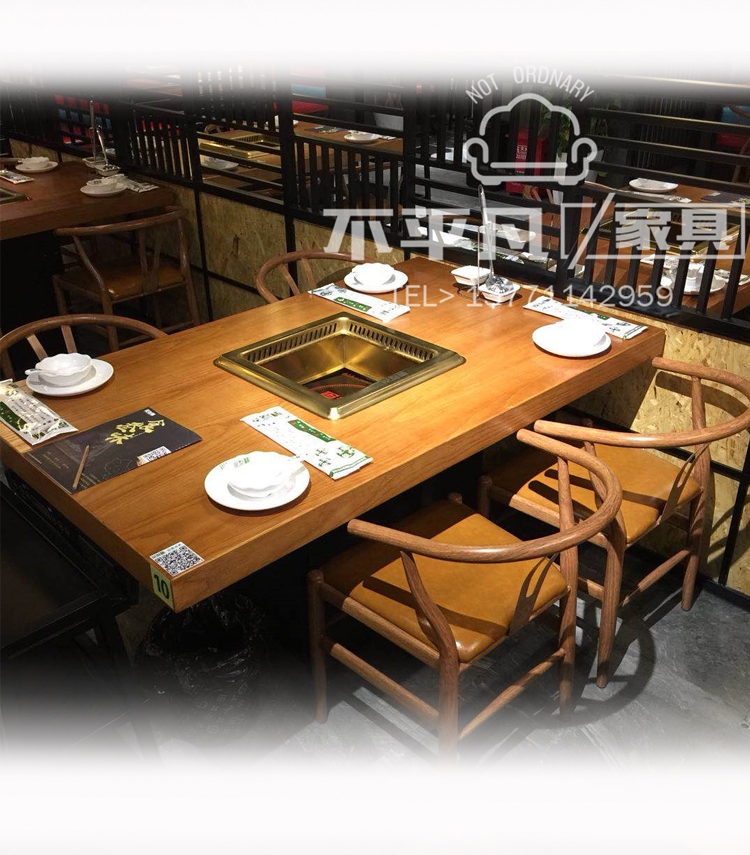 New marble smokeless barbecue table self-smoke purification equipment beef belly hot pot table commercial solid wood tables and chairs customized