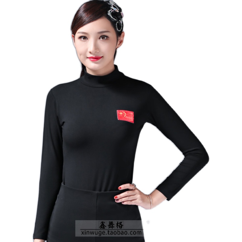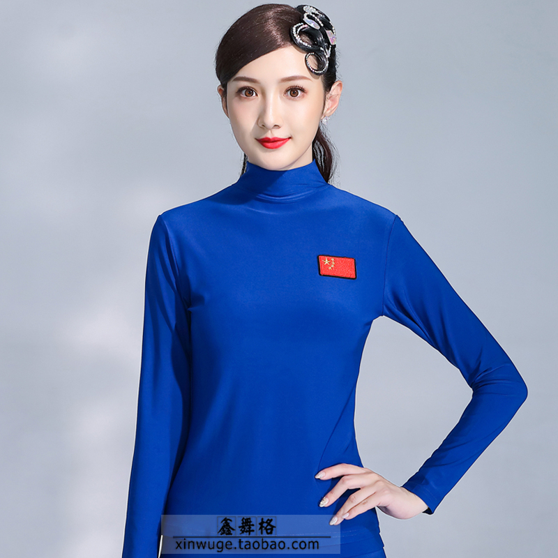 New products square dance bottoming shirts flag flag Latin dance clothes tops long-sleeved ladies dance practice clothes modern dance clothes