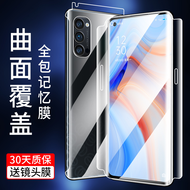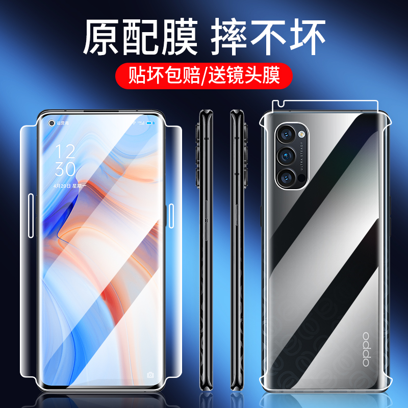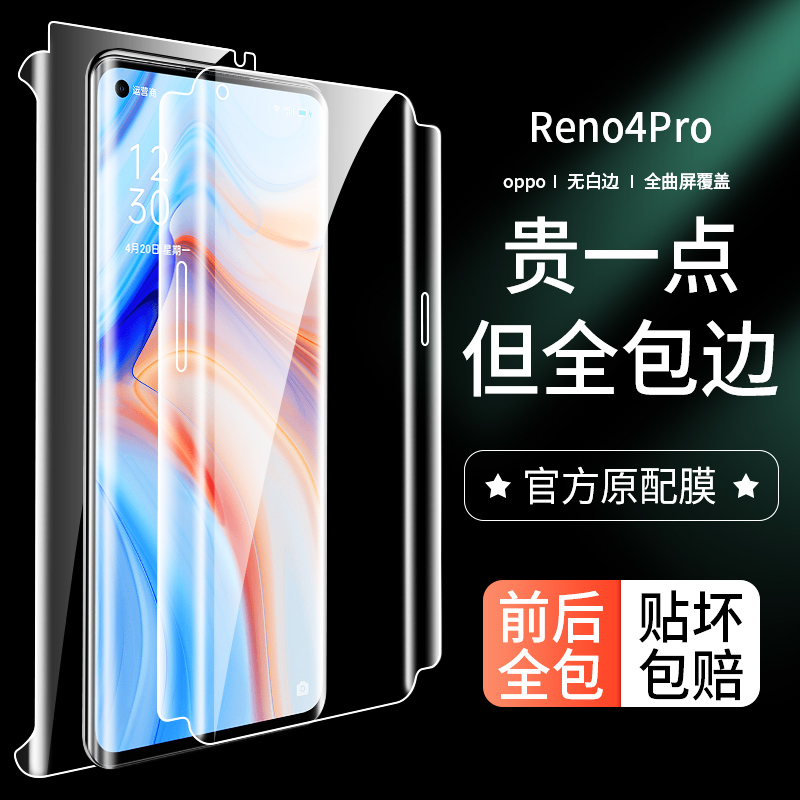 opporeno4 steel chemical film reno4se mobile phone full-screen full-pack edge blue light opopreno4pro water gaze soft film 5g curved screen anti-fall por camera lens protection