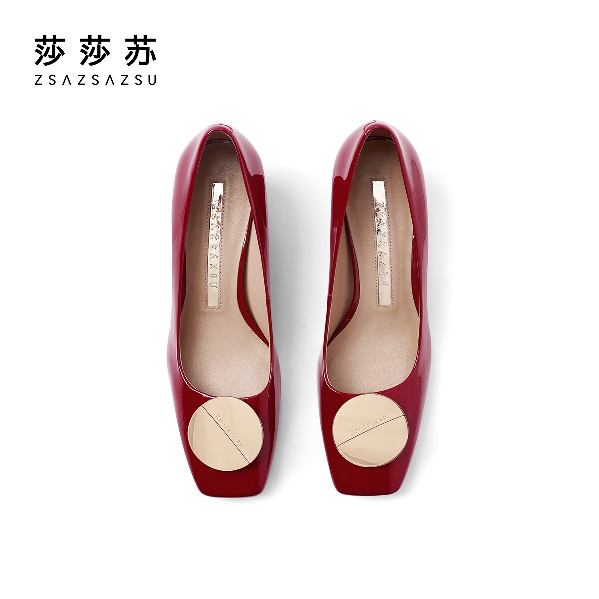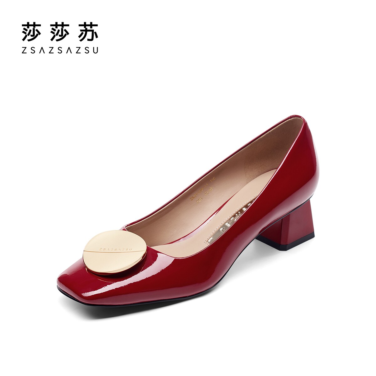 Sashesu sun buckle spring summer new fashion red coarse high heel square head shallow mouth shoes women heel bag shoes