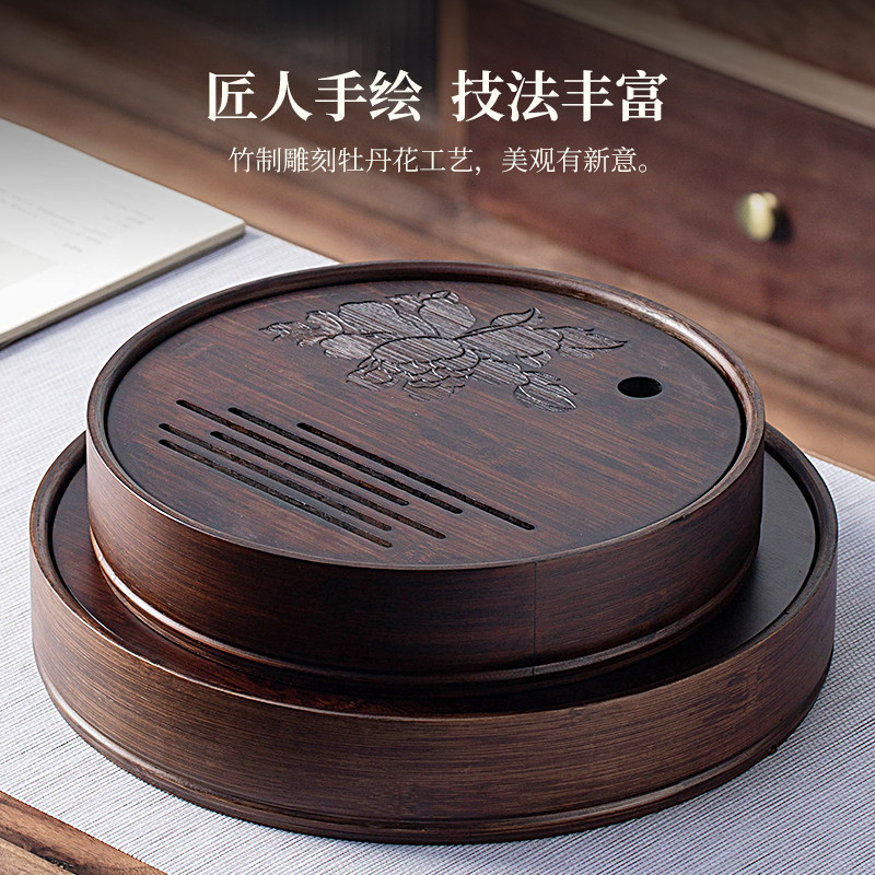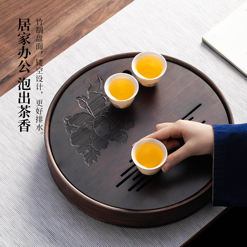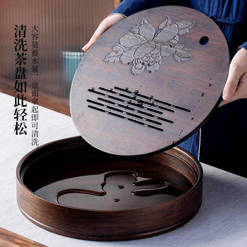 Bamboo tea plate asphalt tray kunfu tea toilet household suite living room small water storage minimal tea sea tea table