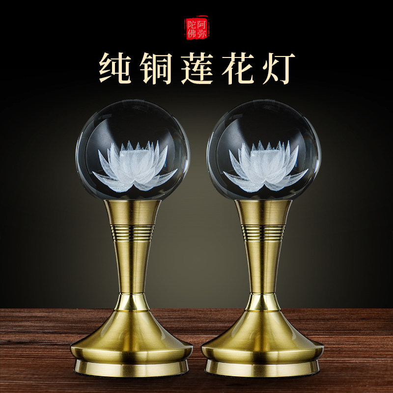 Pure copper led colorful crystal lotus lamp Buddha for the lamp home offering Guanyin lamp Buddha lamp Buddha lamp in front of the lamp Long Ming lamp
