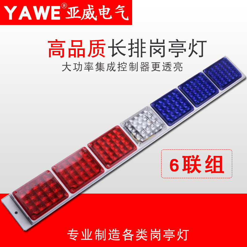 Long Row Six 6 Lids Gang Booth Warning Lights Red Blue Burst Flashing Lights 220V Mennecy Room Policing Kiosk LED Frequency Flash Alarm Lights