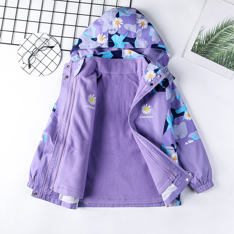 Girls' subcutting coat three in one removable coat for children to pire 2022 new spring - clothes plus - plus - plus - coat tide