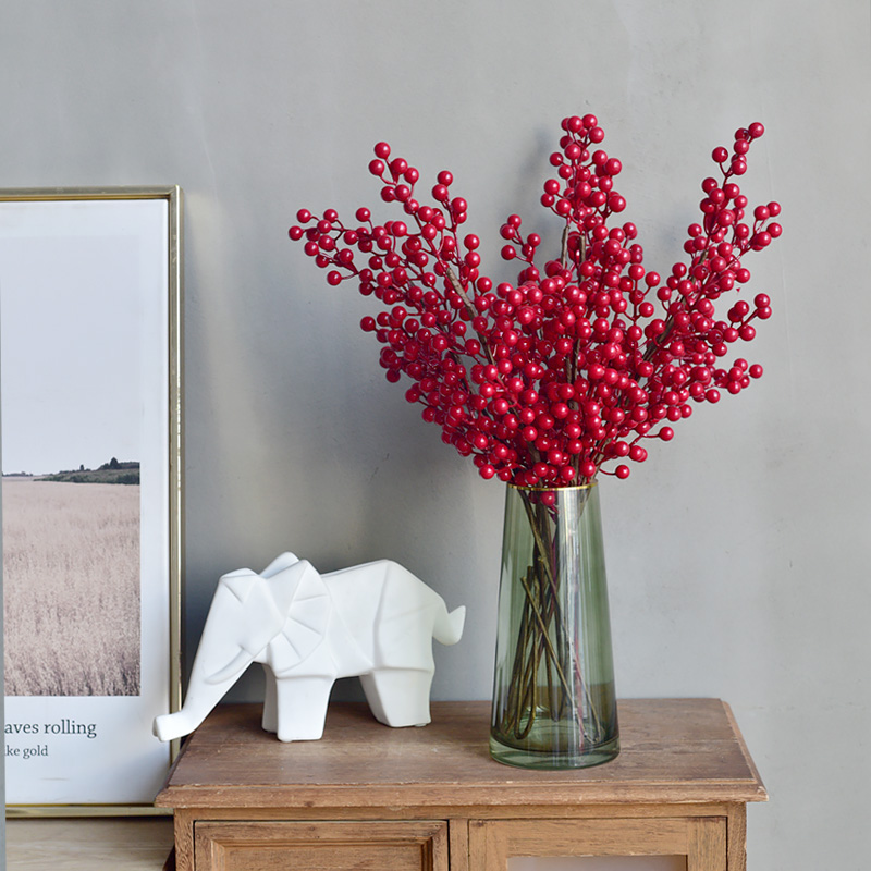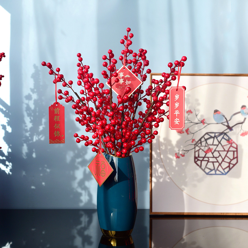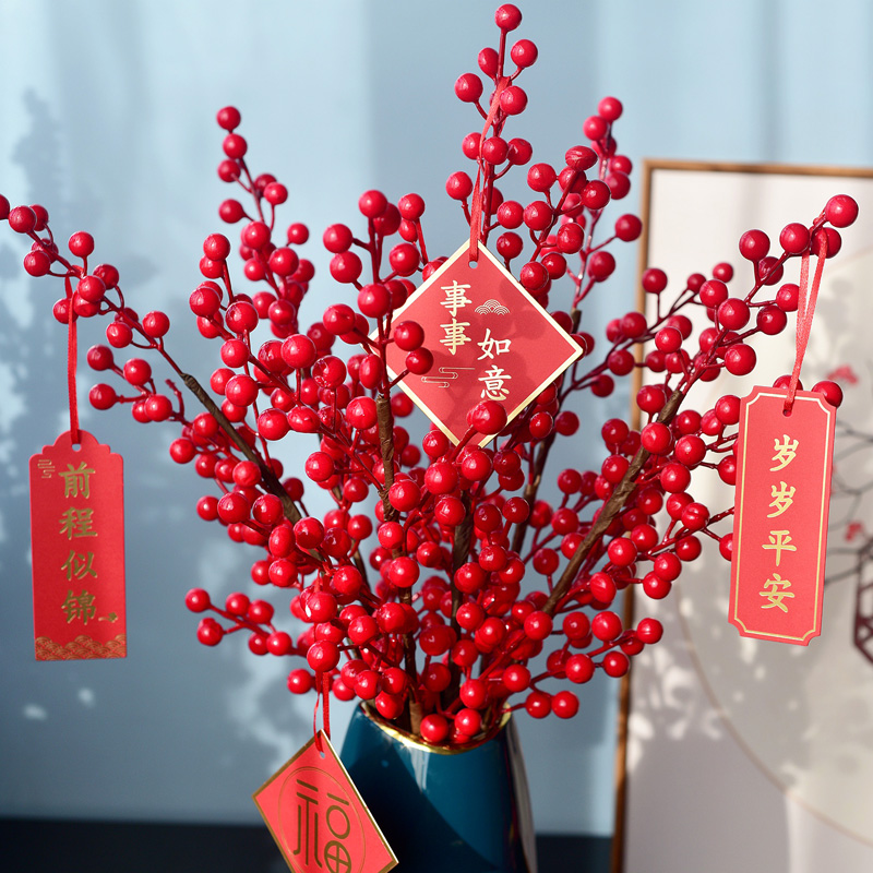 Facai fruit imitation flower ornament New Year flower arrangement bouquet red fruit North American holly living room fake flower dried flower decorative ornaments