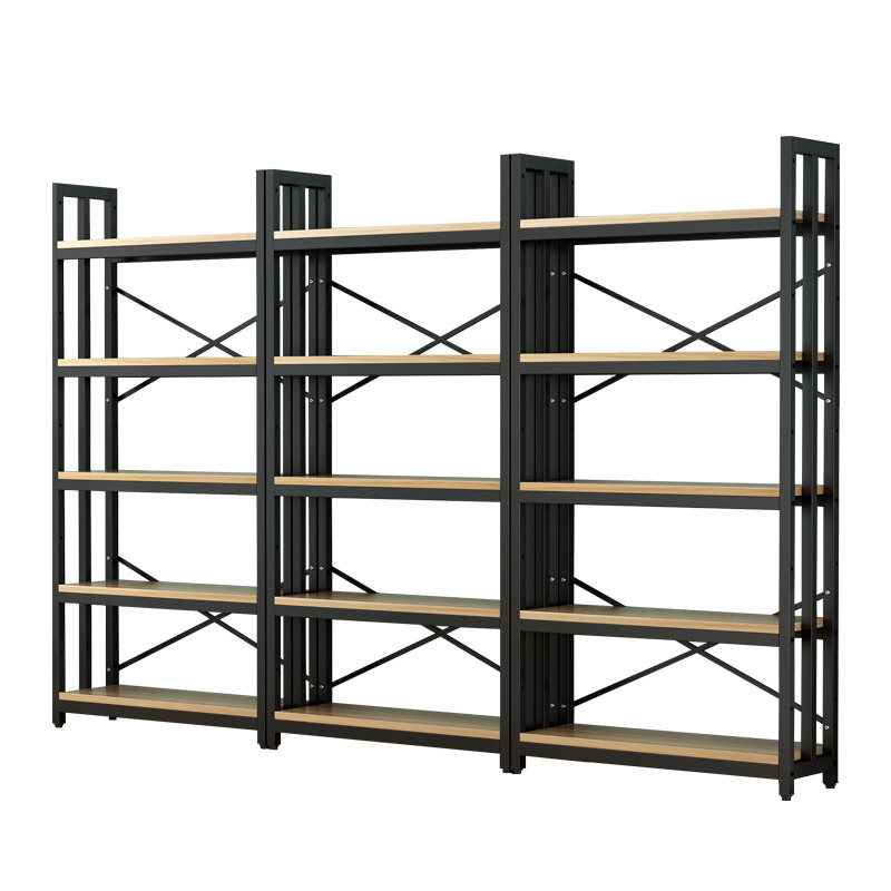 Bookshelf floor simple multi-layer iron shelf bookcase steel wood display stand living room storage storage layer shelf storage
