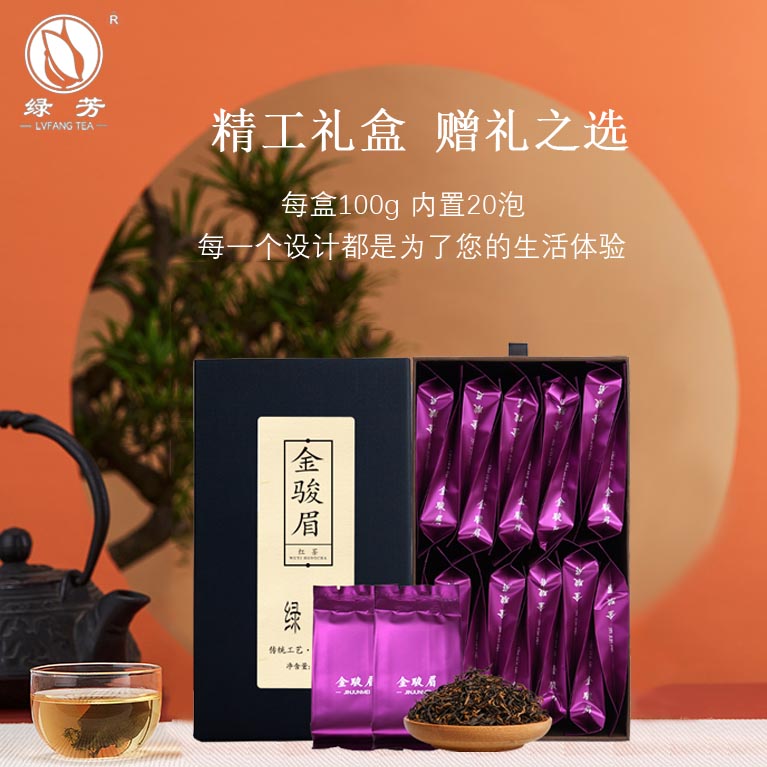 Green aromas tea spring tea special class concentrated fragrance gold Jun-Kung Fu black tea Tea Gift Box Dress 100g * 2 Gift Gift