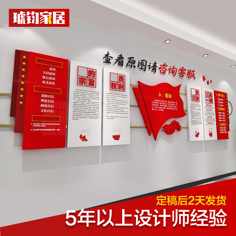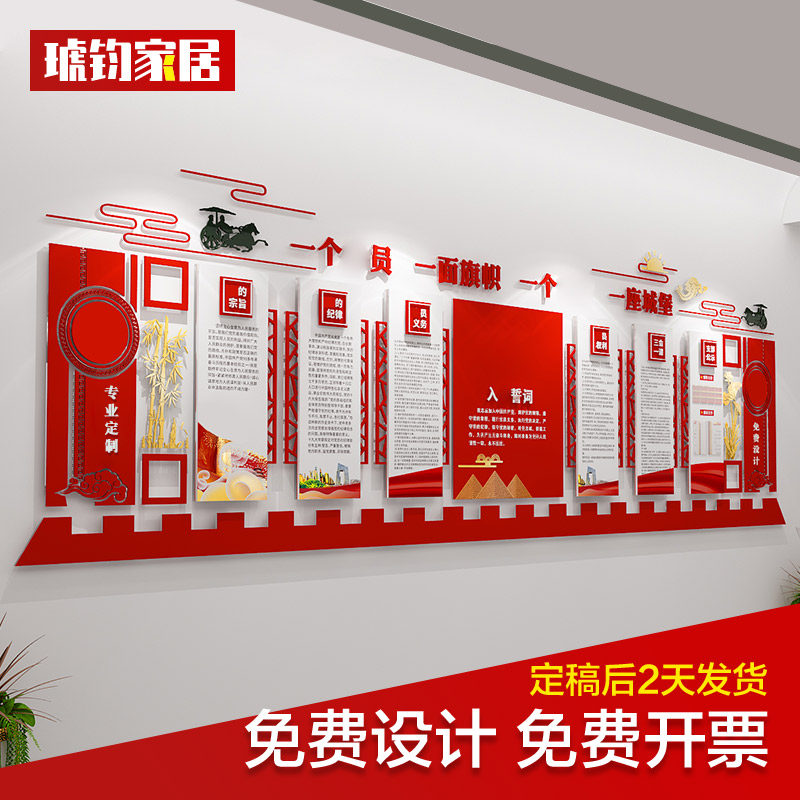 Customize Party Branch Cultural Wall Party Members Activity Room Conference Room Background Wall Red Party Political Education and Education Subject Wall