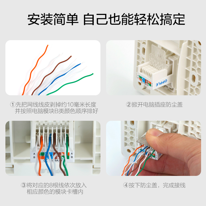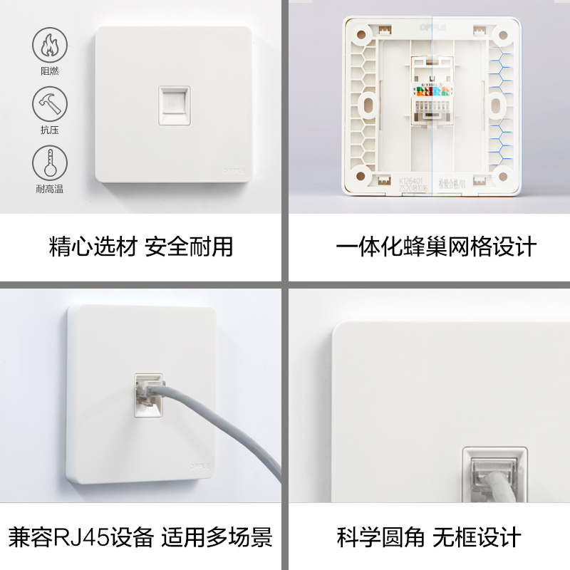 OPPLE 6 six network panel computer network port 86 type network cable box gigabit single and double port network socket W17 socket G