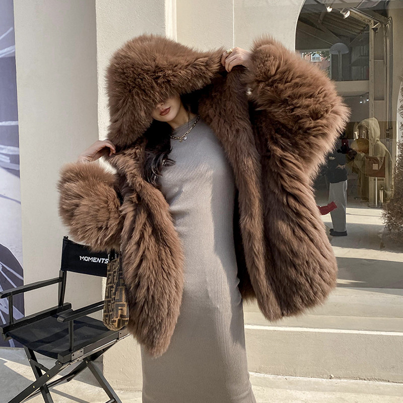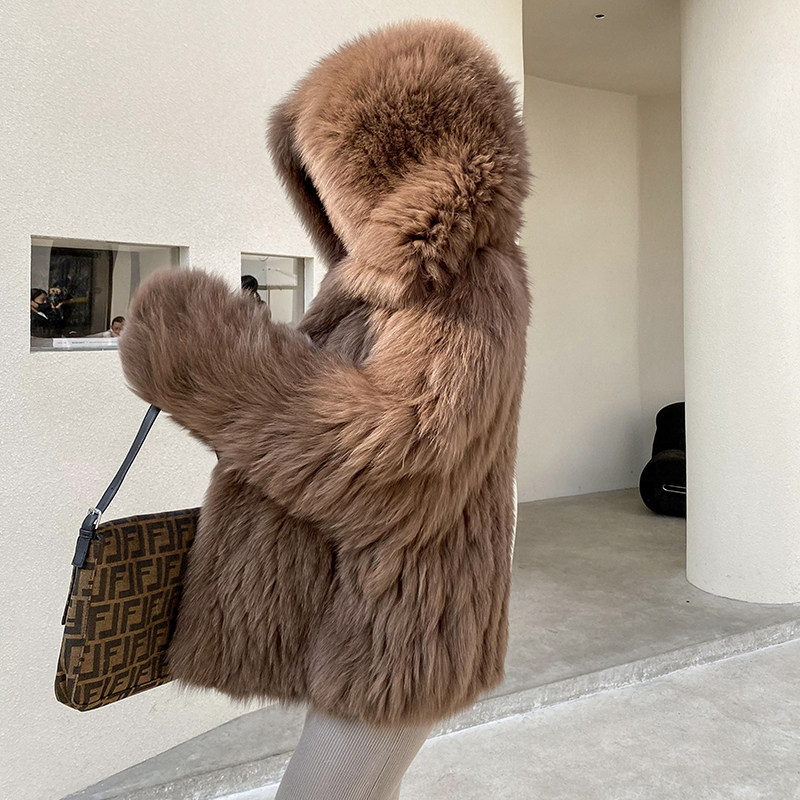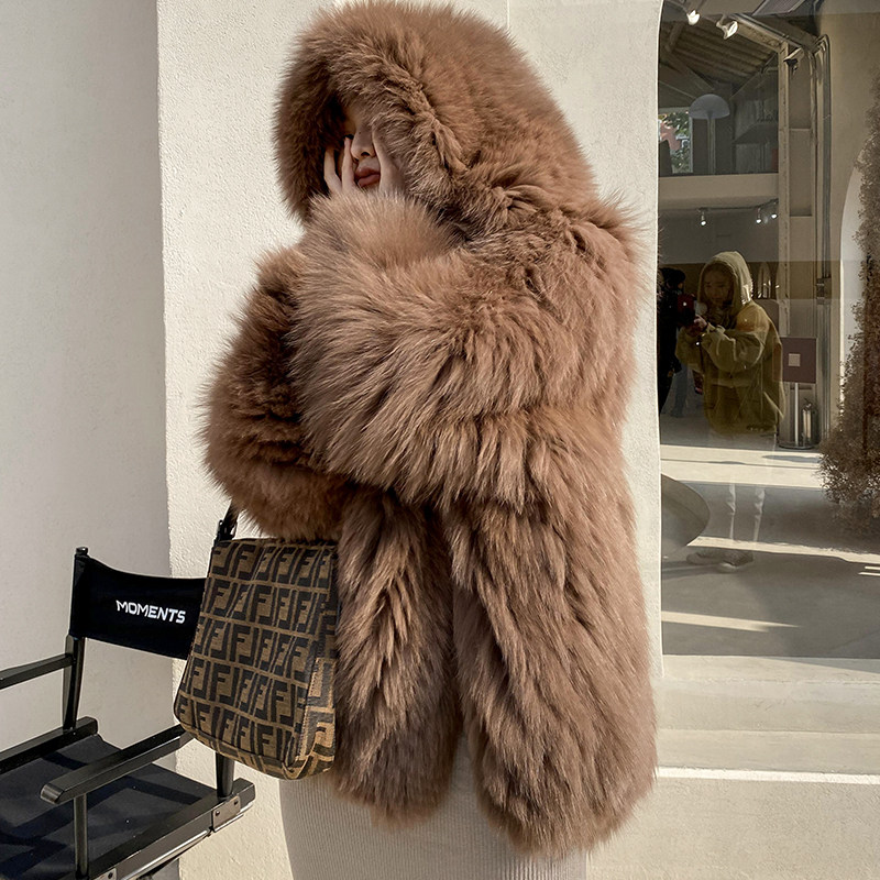 Cubs imported fox fur woven fur coat women's profile hooded net red warm coat women's middle school long edition