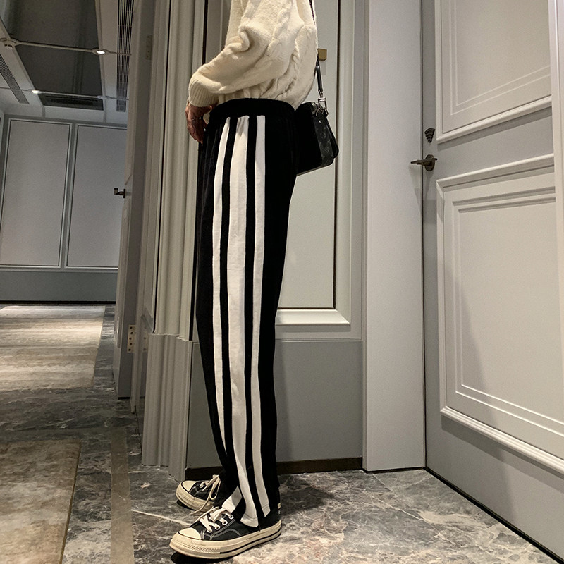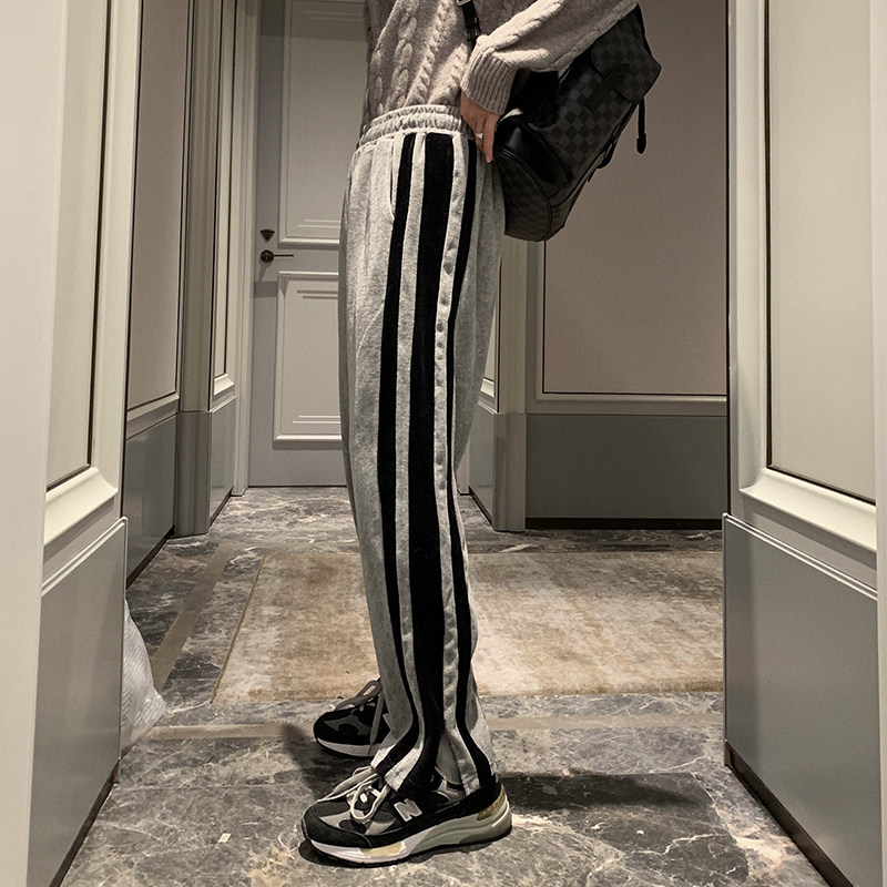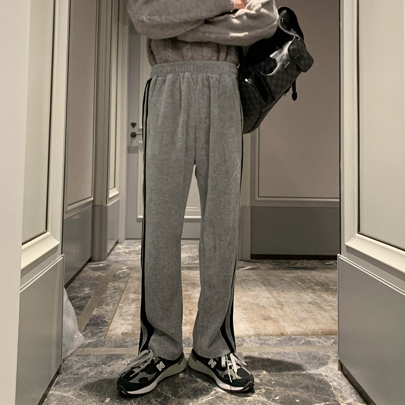 Hualun autumn and winter fleece sweatpants men's loose straight tide brand casual pants all-match Korean trendy pants winter