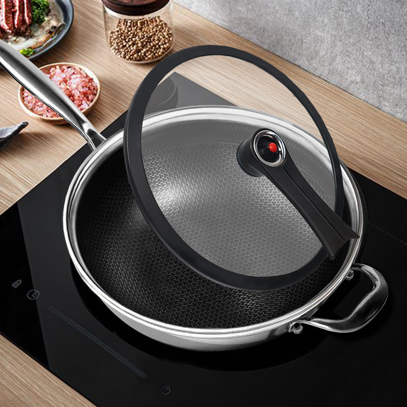 316 stainless steel honeycomb micropressure not stained with pan frying pan frying pan flat bottom pan household induction cookware gas cooker special