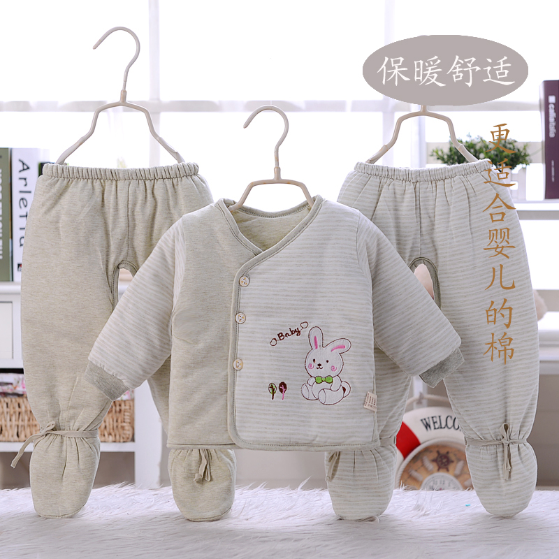 Baby Maggie baby cotton clothes thin cotton suit baby cotton jacket three-piece set newborn 0-6 months pure cotton outwear