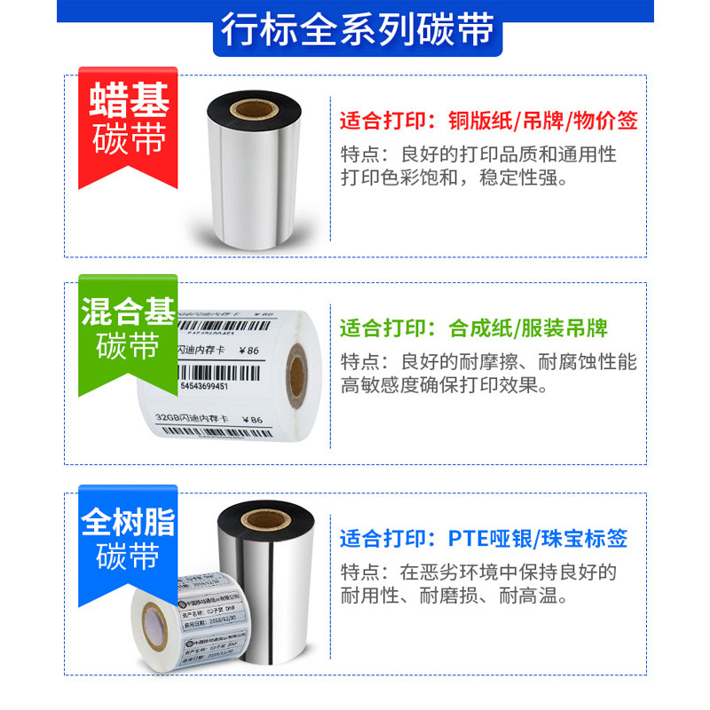 All resin-based carbon belt 110mm*300m80 90mm Jiabotsc barcode machine self-adhesive label printed carbon belt
