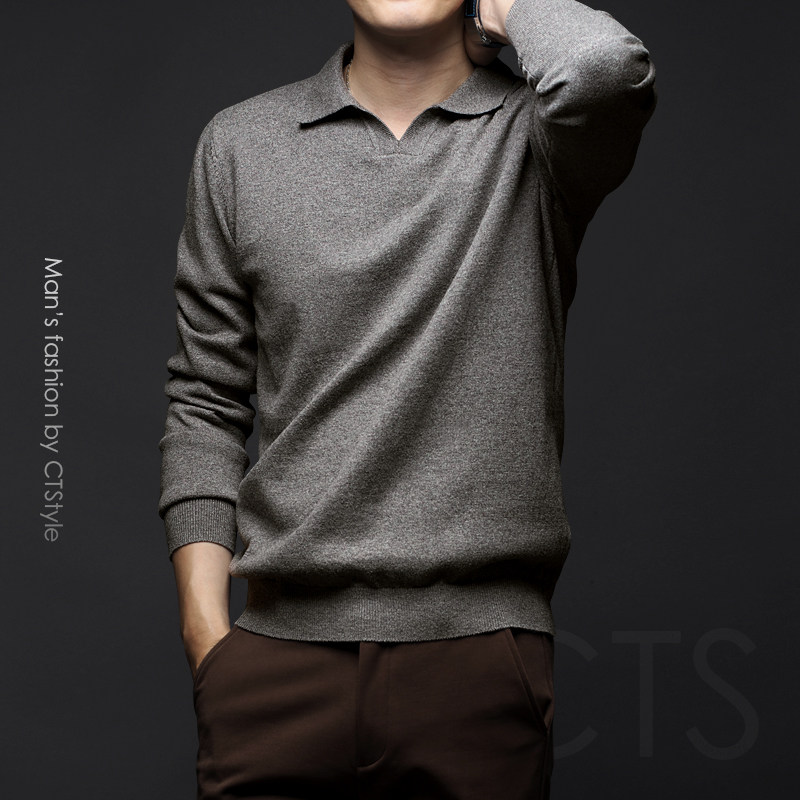 Sweater men's autumn and winter Korean fashion lapel loose casual pullover wool bottoming sweater men's top
