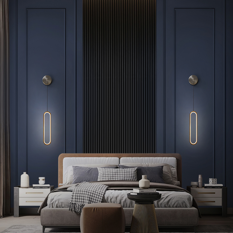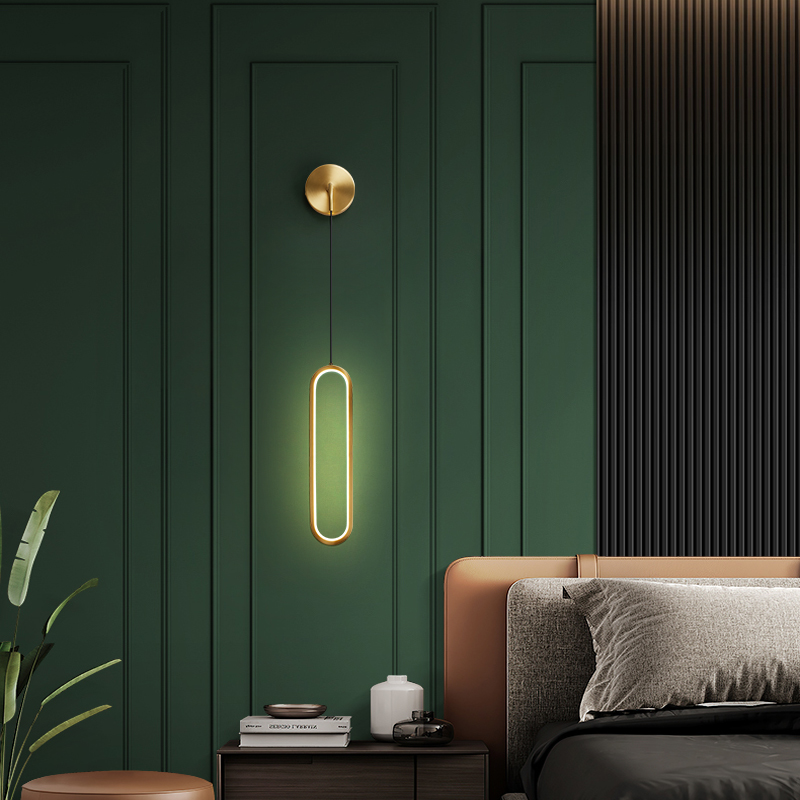 Minimalist headboard wall lamp bedroom modern minimalist light lavish living-room background wall lamp Nordic full copper aisle stair wall lamp