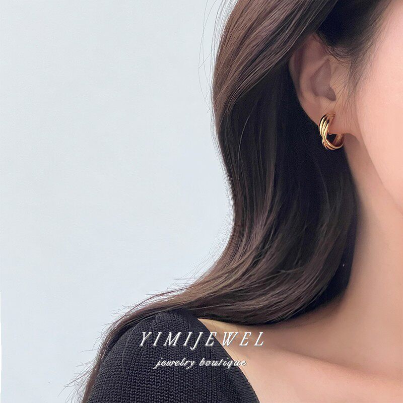 YIMIJEWEL No ear piercing Korean personality geometric all-match ring metal ring painless mosquito coil ear clip earrings