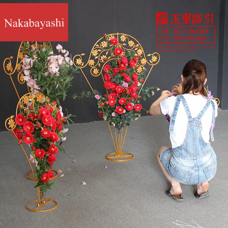 European-style wrought iron jade seal road lead wedding catwalk ornament gold decorative flower utensils wedding stage decoration supplies