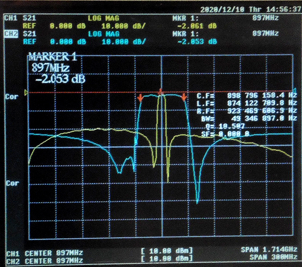 897 5 (880-915) MHz EGSM dedicated SAW bandpass filter 35MHz bandwidth SMA connector