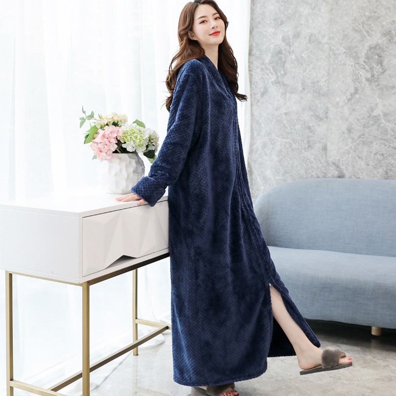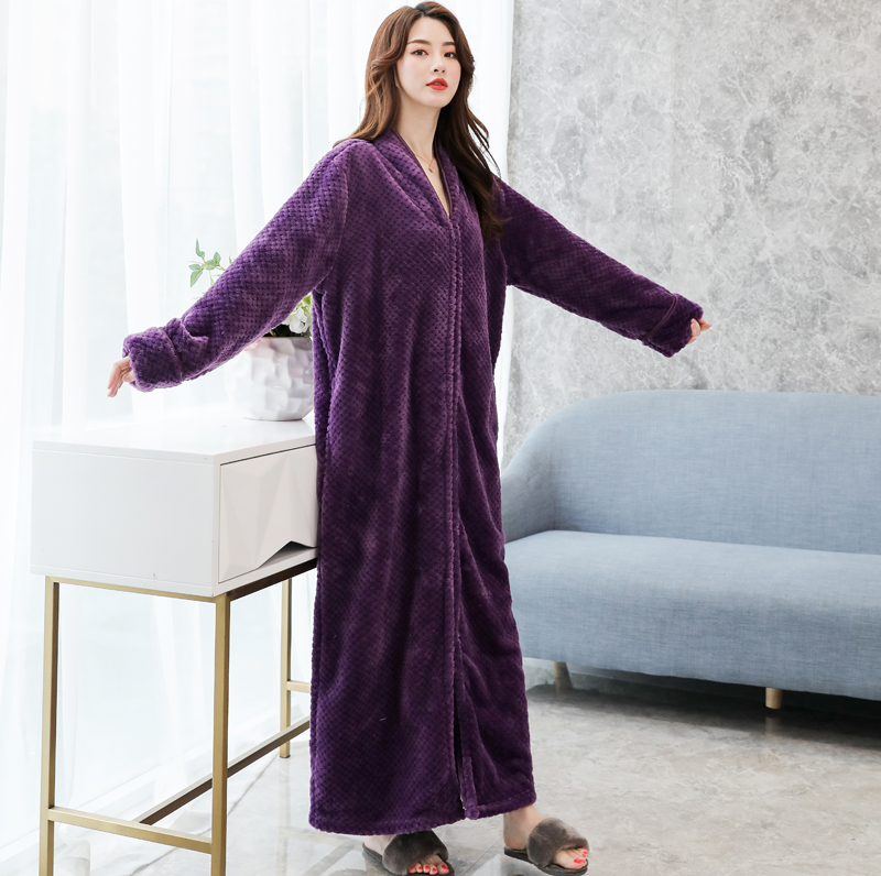 Coral velvet zipper nightdress loose middle-aged mother winter extra long pajamas one-piece thickened can be worn outside the home long skirt