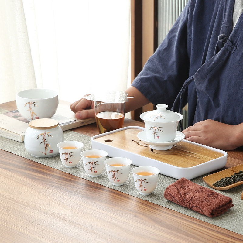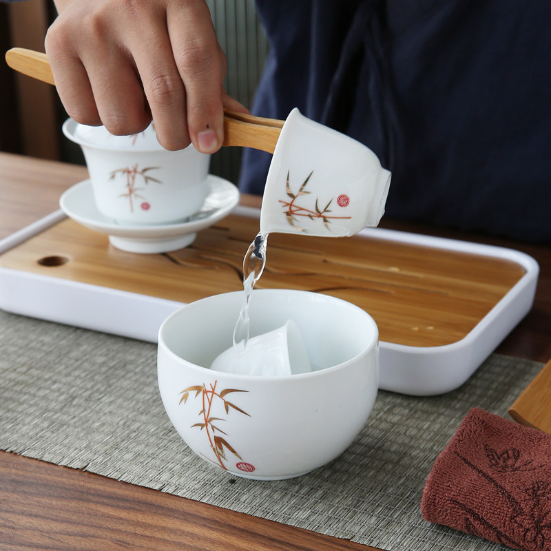 Tea artist performance training tea set portable simple drinking tea cover bowl ceramic travel kung fu tea set