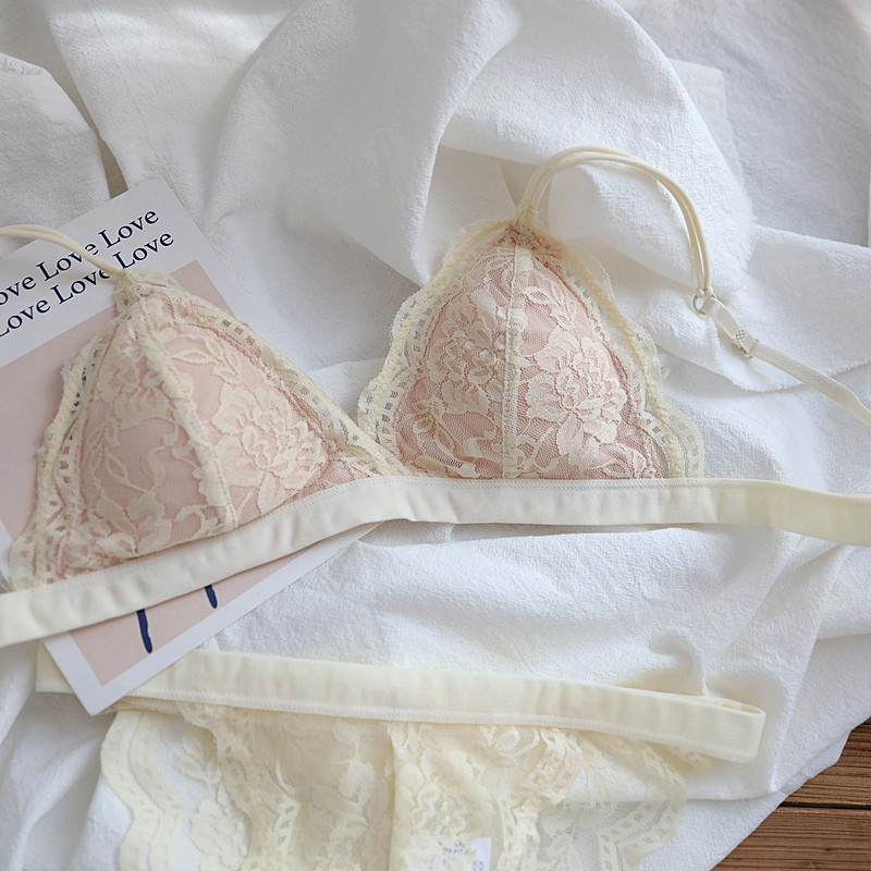 French triangle cup thin underwear beautiful sexy lace lace without steel ring small chest bra set with underwear