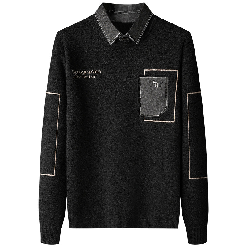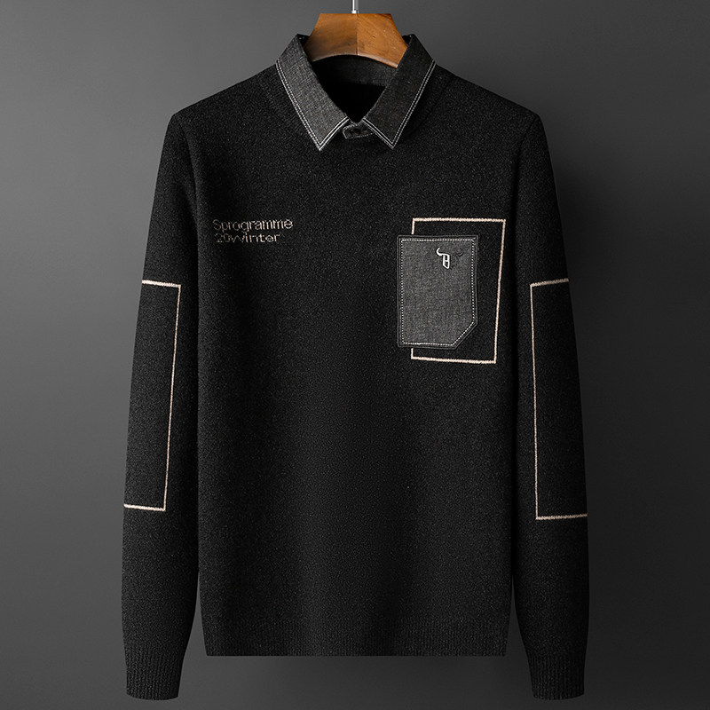 Fake two sweaters men's shirt collar knitwear 2020 new trend thickened lead bottom shirt autumn and winter top tide