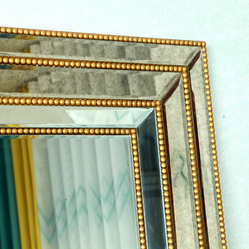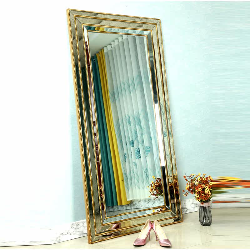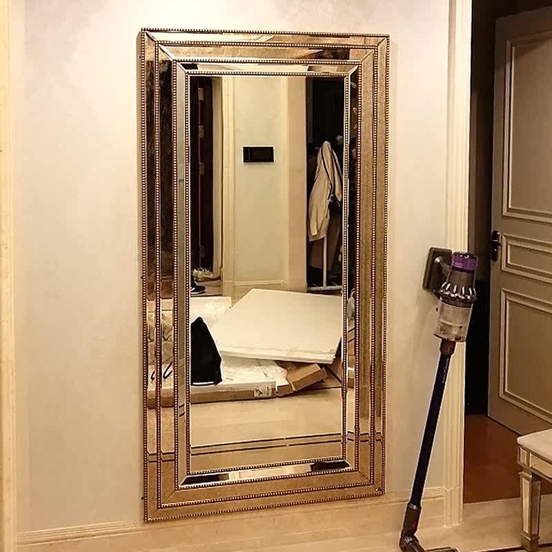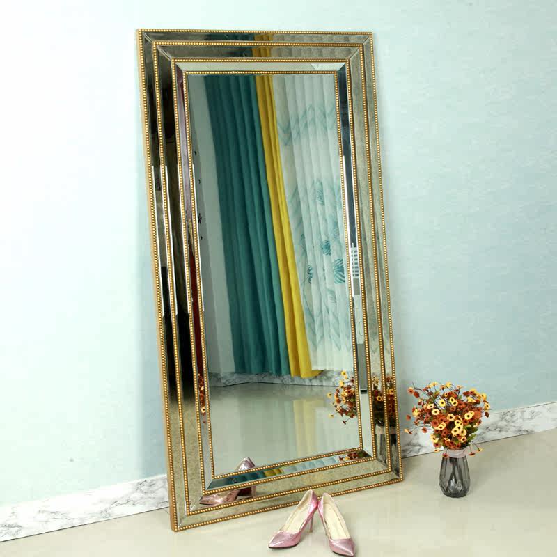 Fashion simple household wall hanging mirror beads in light luxury test clothes mirror clothes store red full body mirror