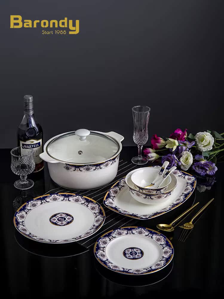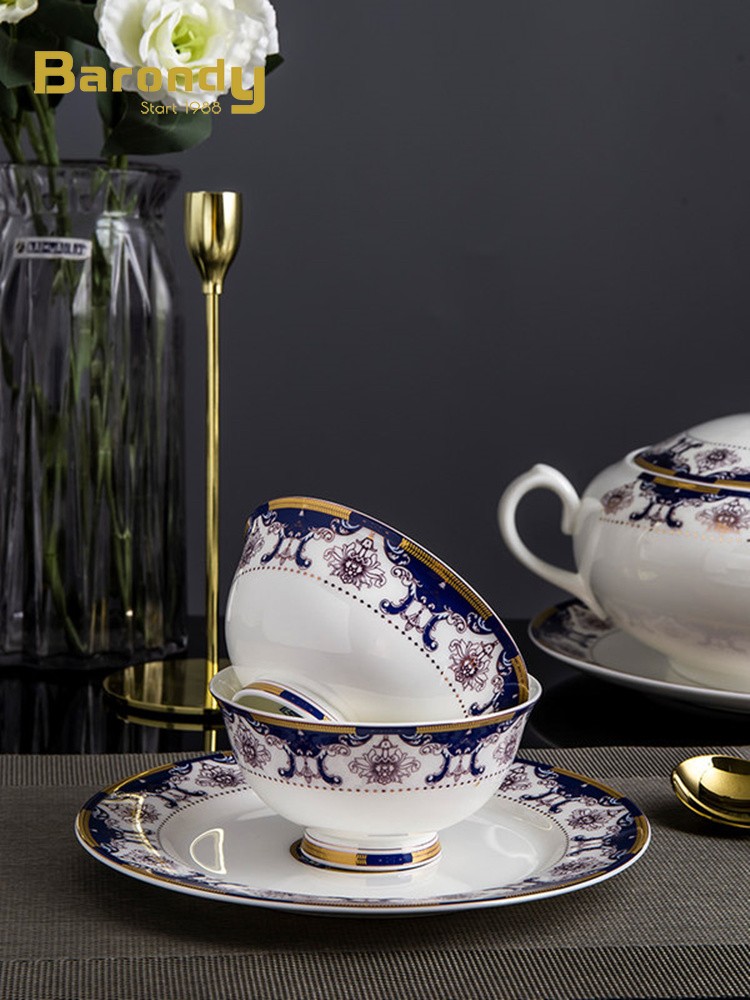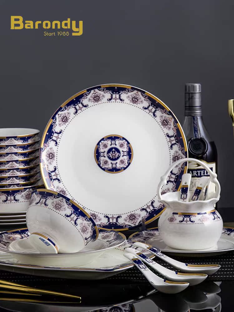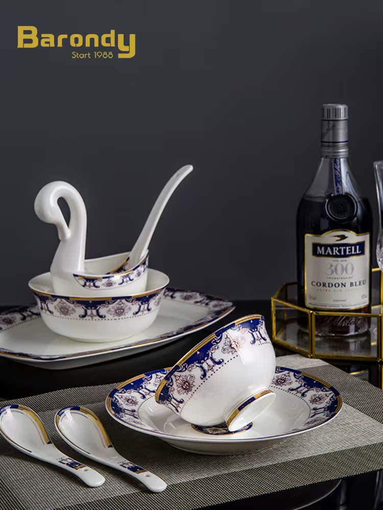 Barondy housewarming home European high grade bone china tableware Jingdezhen Bowl plate spoon dish saucer wedding gift set