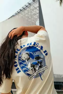 BOARDHEAD SS21 Light yellow ROSE PRINT SKATEBOARD LOOSE SHORT-SLEEVED T-SHIRT