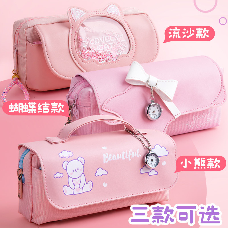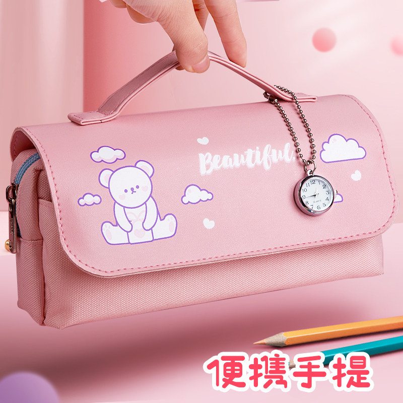 2020 new net red pen bag primary school students simple cute large capacity female stationery box junior high school students ins Japanese department tide Korea high value fairy girl children pencil box stationery bag pen case