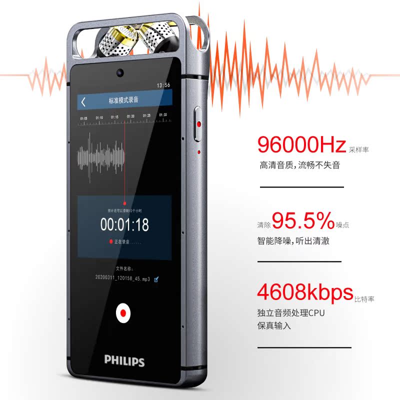 774 Philips VTR9100 Recording Pen ai Intelligent Professional HD Noise Reduction Can be transferred to text Transcript Pen Minutes Interview Face Recognition Encryption Unlock Long Standby Large Capacity