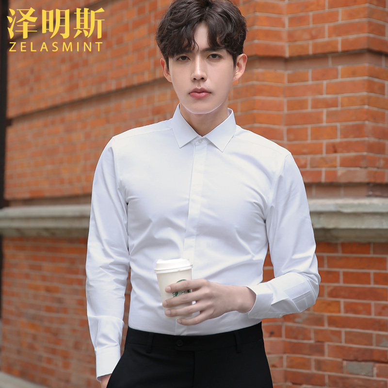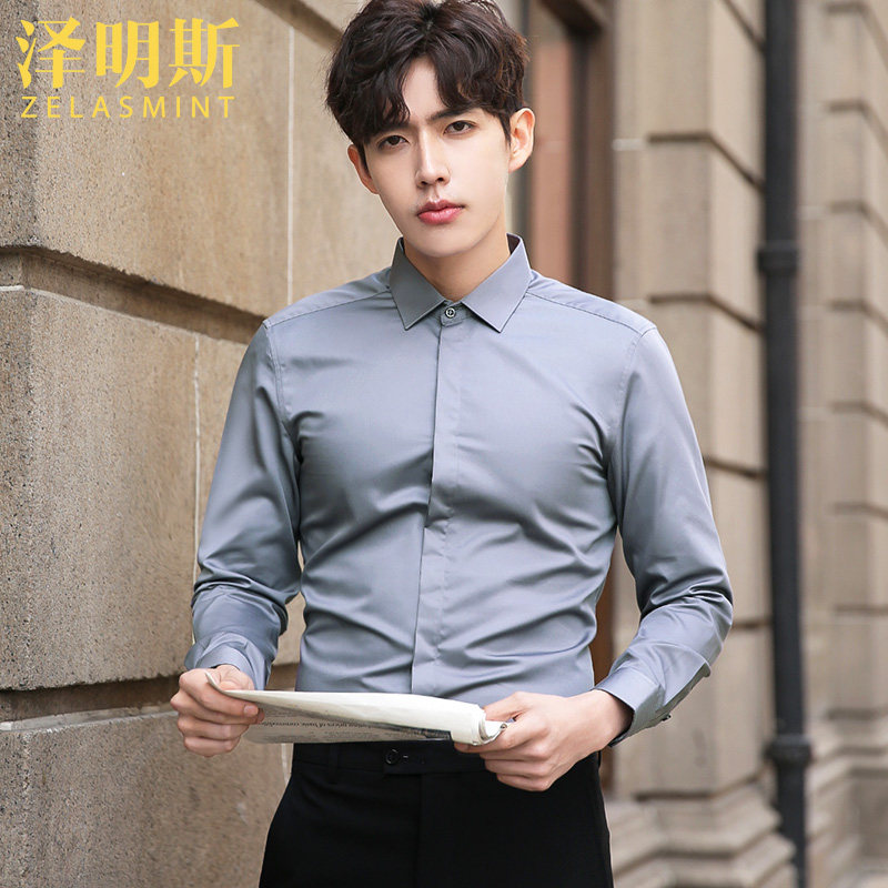 Zemmings light blue positive dress shirt man long sleeve working professional business casual free ironing for work frock white shirt