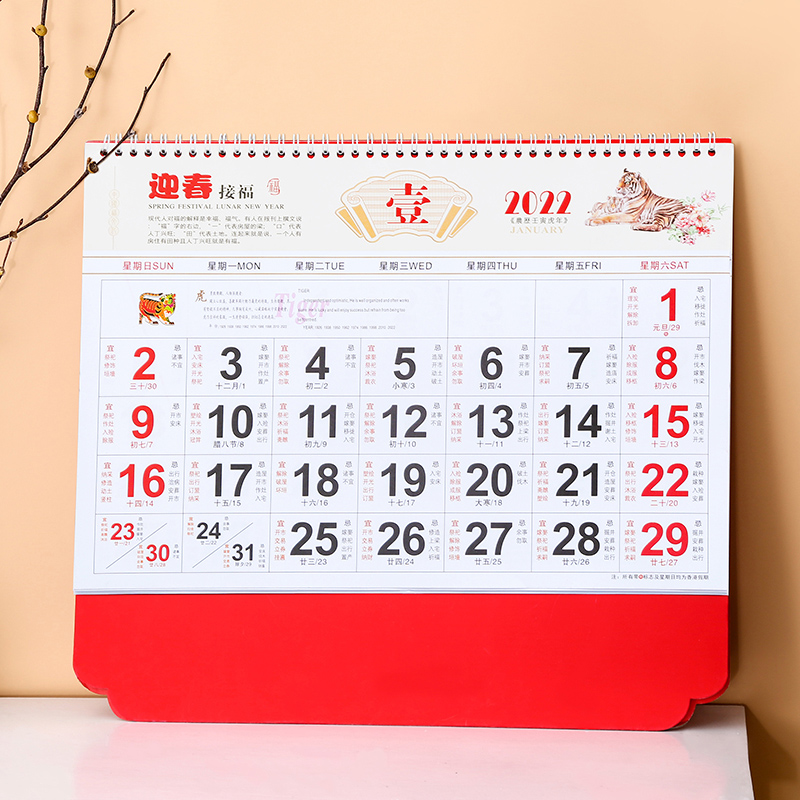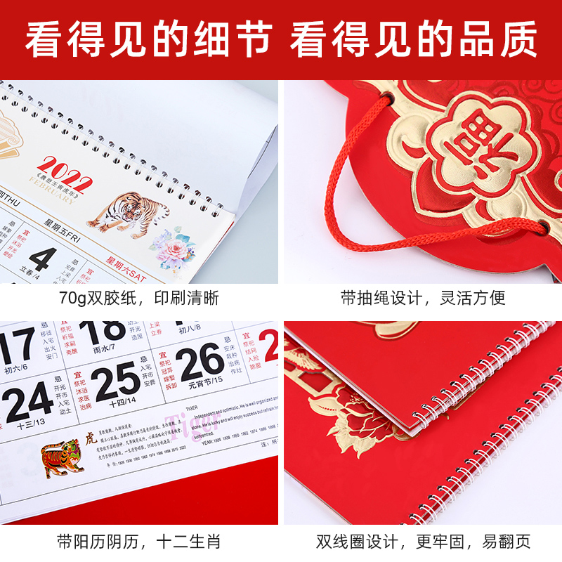Fu Characters Hang Calendar 2022 Customized Company Ad Creative Lunar Calendar Ripping to Made in China Wind gold leaf Forcard hanging card 2021 Home hanging wall Yellow calendar big hand ripping calendar bull year hanging calendar