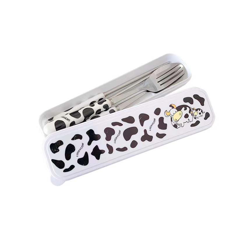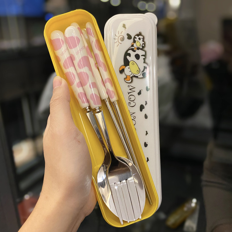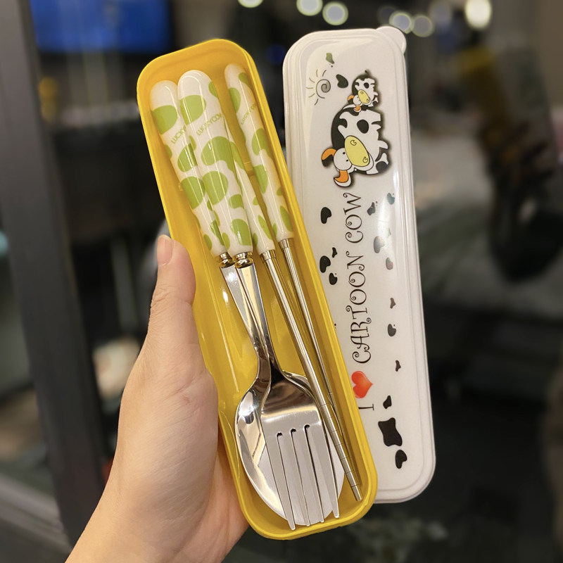 Cute student stainless steel convenient portable tableware set girl heart lunch box ceramic fork spoon with box storage