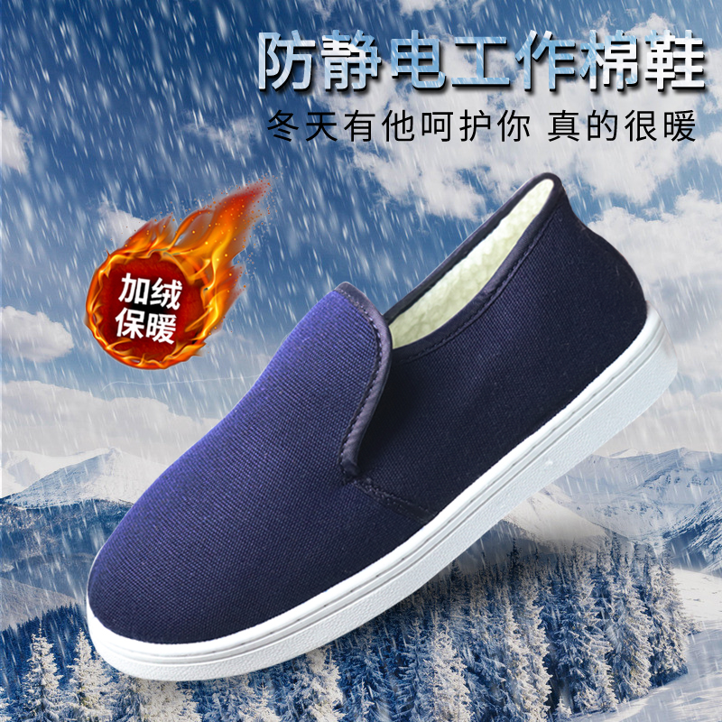 Anti-static shoes thick soft bottom white blue winter plus velvet men's and women's non-slip electronics factory workshop work cotton shoes
