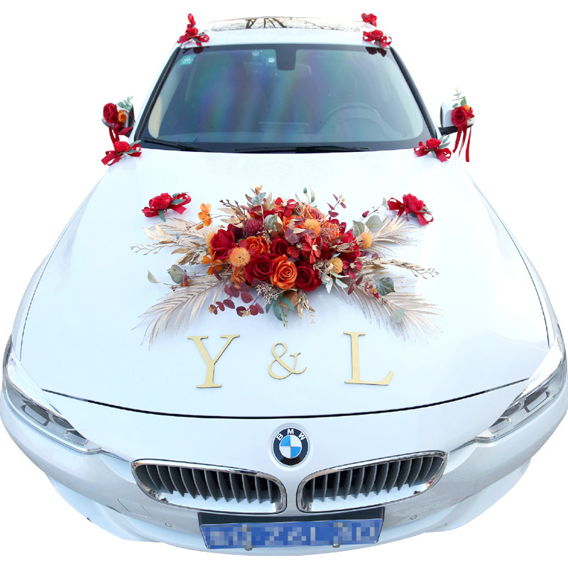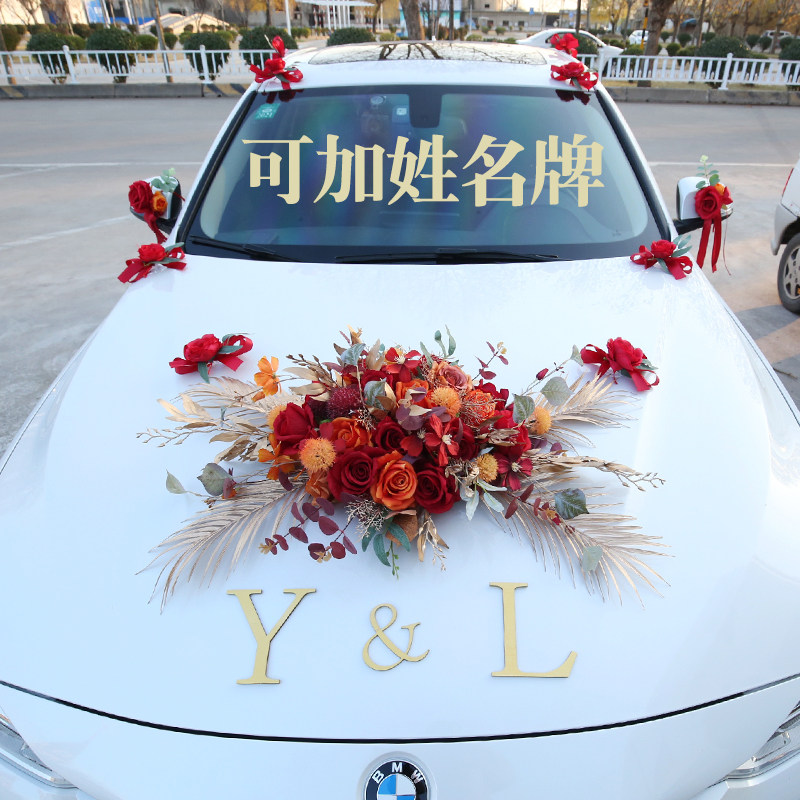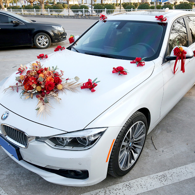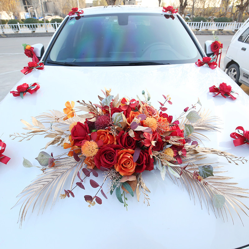 Red gold imitation wedding car decoration main front flower set wedding celebration supplies full set of pull flower arrangement new suction cups
